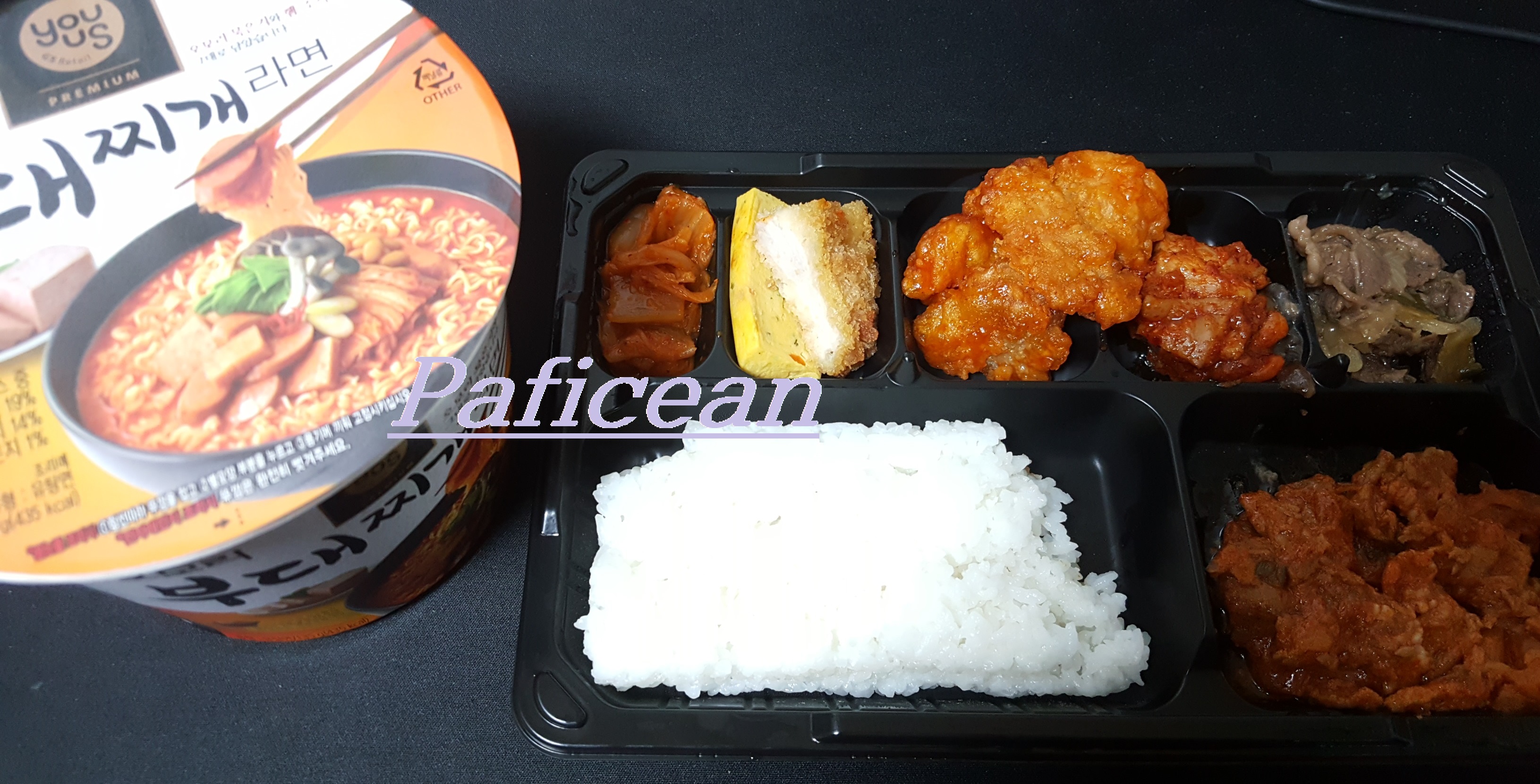 저녁에 김치찌개가 먹고 싶었는데, 만들어 먹기는 여의치 않고 가게는 문 닫을 시간이어서 어쩔 수 없이 편의점을 향했습니다. 집 근처 GS 편의점에서 오모리 김치찌개라면이라도 사 먹어야겠다 싶었습니다. 어 근데.. 오모리 김치찌개 자리는 물건이 텅 비어서 없고, 그 옆에 부대찌개 라면만 진열되어 있었습니다. 어쩔 수 없다 싶어서 김치찌개라면 대신에 오모리 부대찌개 라면을 장바구니에 놓었습니다. 알아보니 오모리는 김치찌개, 부대찌개, 참치찌개 이렇게 3종류의 라면이 있는 것 같았습니다. 와.. 찌개라면도 독특한데 각기 다른 찌개를 라면으로 먹어볼 수 있는데 오모리의 차별화 전력인 듯 합니다. 그렇게 라면과 함께 고진많 도시락도 구입했습니다.