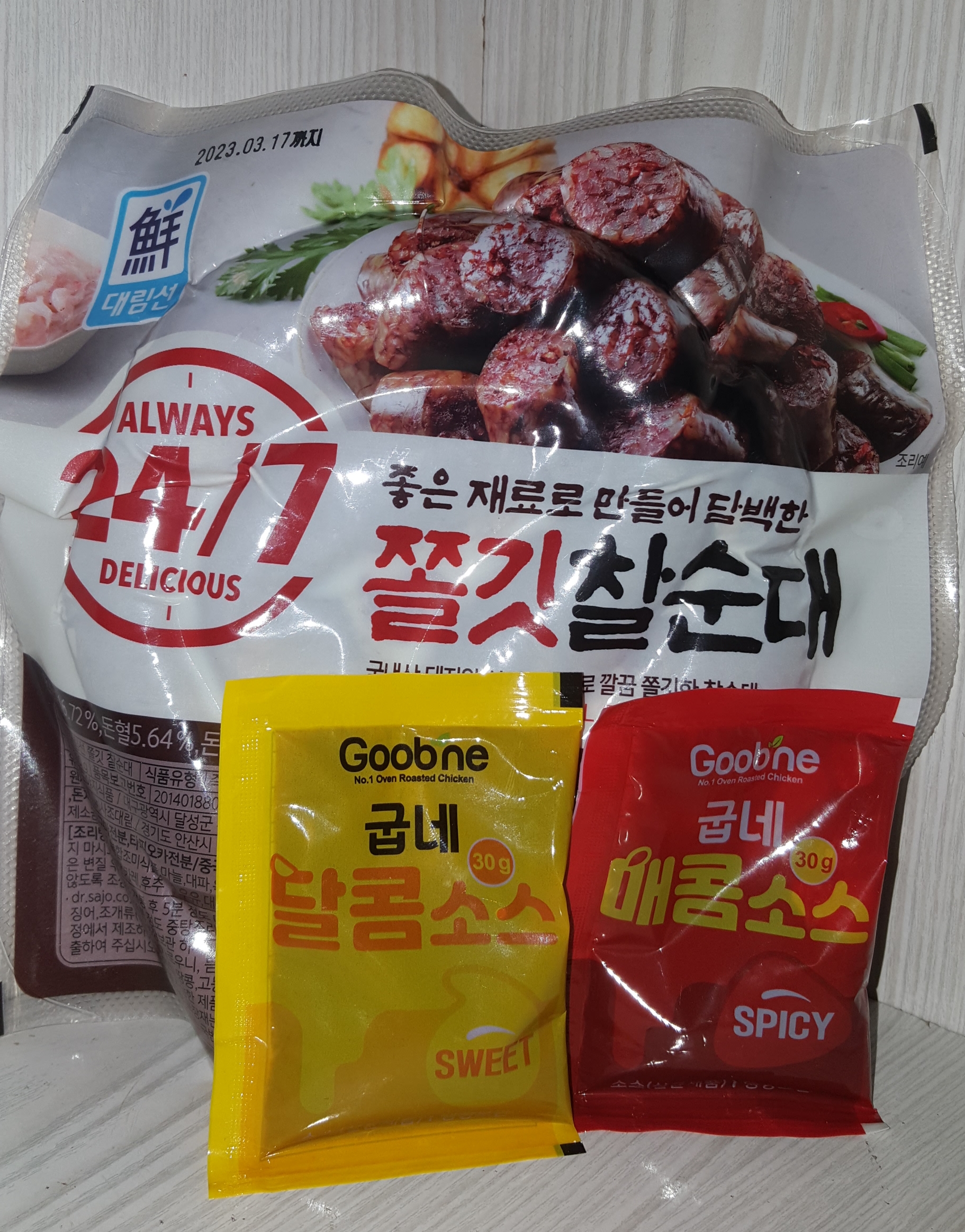 늦게까지 잠을 자고 일어난 휴일. 슬슬 밥을 챙겨 먹어야 할 시간입니다. 불금이라고 어제 외식을 했는데 토요일 첫끼니부터 배달음식을 먹고 싶지는 않았습니다. 대신, 집에서 간단하게 만들어 먹고 싶었습니다. 냉장고를 열어보니 얼마 전 마트에서 장 볼 때 사 둔 대림선 쫄깃 찰순대와 쌈배추가 있었습니다. 양념장은 뭘 할까 고민이 됐습니다. 고추장이 있기는 했는데, 고추장 옆에 굽네치킨 시켜 먹을 때 추가로 배달된 소스를 남겨둔 게 보였습니다. 볶음밥 해 먹을 때 넣어볼까 했던 치킨소스. 그 소스를 넣어서 순대 볶음을 간단하게 만들어 먹기로 했습니다.